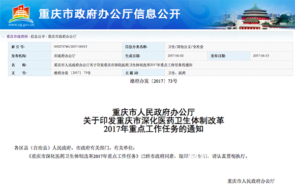 。ㄓ浾 黃宇)13日,重慶市政府網(wǎng)公布了《重慶市人民政府辦公廳關(guān)于印發(fā)重慶市深化醫(yī)藥衛(wèi)生體制改革2017年重點(diǎn)工作任務(wù)的通知》(以下簡(jiǎn)稱《通知》),明確了全面推進(jìn)公立醫(yī)院綜合改革的時(shí)間和范圍,要求在2017年8月底前,所有公立醫(yī)院?jiǎn)?dòng)改革,全面取消藥品加成(中藥飲片除外),建立公立醫(yī)院由服務(wù)收費(fèi)和政府補(bǔ)助兩個(gè)渠道補(bǔ)償?shù)男聶C(jī)制,推動(dòng)新舊運(yùn)行機(jī)制平穩(wěn)轉(zhuǎn)換。
