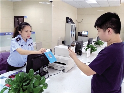 交巡警向市民介紹使用支付寶進(jìn)行交通違法處理。
