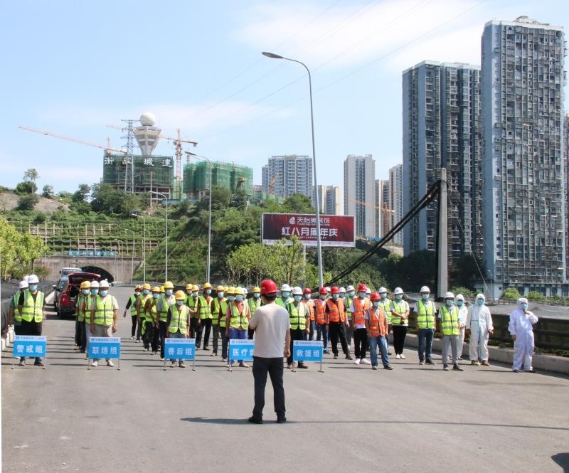 央廣網(wǎng)重慶8月17日消息(通訊員趙凱)8月17日,中建土木西南公司紅巖村橋隧項(xiàng)目聯(lián)合附近醫(yī)院在重慶九龍坡區(qū)五臺(tái)山立交開(kāi)展疫情演練和防控培訓(xùn)活動(dòng),業(yè)主單位代表、中建土木西南公司各部門(mén)、項(xiàng)目疫情常態(tài)化防控指揮部成員、防疫管理員以及分部勞務(wù)人員參加演習(xí)。