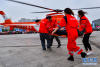 11月12日,航空應(yīng)急醫(yī)療救援在重慶市璧山區(qū)舉行,圖為救援人員將病人抬到擔(dān)架,準(zhǔn)備登機(jī)。新華網(wǎng) 李相博 攝 -