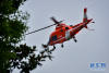 11月12日,航空應(yīng)急醫(yī)療救援在重慶市璧山區(qū)舉行,轉(zhuǎn)移到直升機(jī)后,救援人員對病人實(shí)施必要的急救措施。新華網(wǎng) 李相博 攝 -