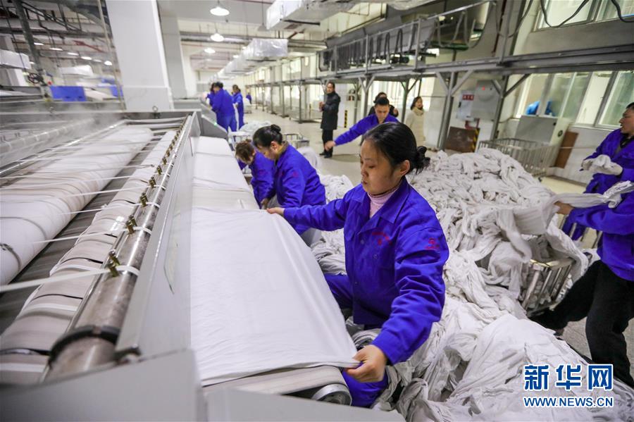 2月1日,重慶客運(yùn)段整備車間的洗滌工在高溫消毒熨燙機(jī)前清理檢查清洗后的臥具。 當(dāng)日,2018年春運(yùn)正式啟動(dòng)。中國鐵路成都局集團(tuán)有限公司重慶客運(yùn)段整備車間內(nèi),上百名列車臥具洗滌工值守在洗衣機(jī)、熨燙機(jī)前為春運(yùn)列車的安全衛(wèi)生貢獻(xiàn)著力量。新華社記者 劉潺 攝 -