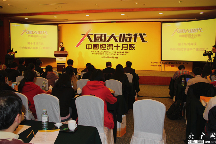 10月25日,由中央人民廣播電臺(tái)經(jīng)濟(jì)之聲、央廣網(wǎng)主辦的《大國(guó)大時(shí)代----中國(guó)經(jīng)濟(jì)十月談》系列時(shí)事報(bào)告會(huì)之十“博弈談”,在廣電國(guó)際酒店舉行。今天的主題是《博弈談:中央和地方事誰(shuí)干?錢誰(shuí)出》。圖為報(bào)告會(huì)現(xiàn)場(chǎng) (央廣網(wǎng) 于琦/攝)