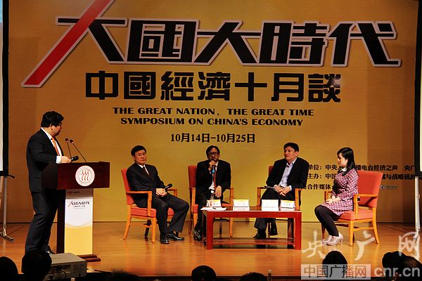 央廣網(wǎng)財(cái)經(jīng)北京10月15日消息 由中央人民廣播電臺(tái)經(jīng)濟(jì)之聲、央廣網(wǎng)財(cái)經(jīng)主辦的《大國大時(shí)代----中國經(jīng)濟(jì)十月談》系列時(shí)事報(bào)告會(huì)第二場在人民大學(xué)舉行。今天的主題是《增長談——大國增長的極限到了嗎?》。人民大學(xué)中國經(jīng)濟(jì)改革發(fā)展研究院執(zhí)行院長、經(jīng)濟(jì)學(xué)院副院長劉元春,國家發(fā)改委學(xué)術(shù)委員會(huì)秘書長張燕生等出席報(bào)告會(huì)并發(fā)表演講。