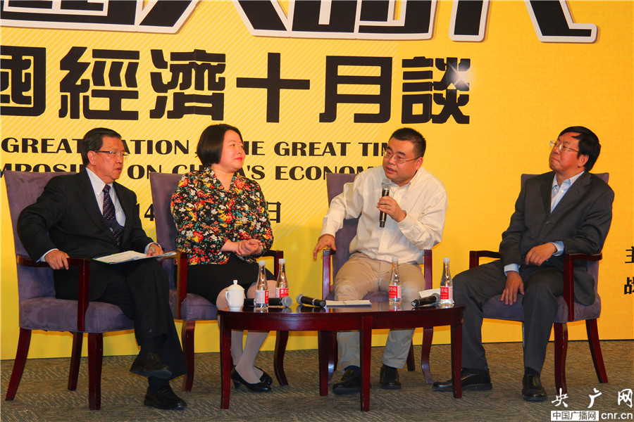 左一:中國入世談判首席談判代表、原博鰲亞洲論壇秘書長 龍永圖;左二:商務(wù)部國際貿(mào)易經(jīng)濟合作研究院副院長 邢厚媛;右一:經(jīng)濟之聲代表 楊春陽;右二:《首席財務(wù)官》雜志出版人兼總編輯 田茂永(央廣網(wǎng) 李靜/攝)