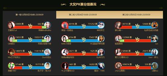 2016酷狗直播繁星音樂盛典總決選自11月17號零點開通報名之后,賽況持續(xù)火熱,目前,海選資格賽和晉級賽已經結束,此時正在進行的是淘汰賽。此次決選的規(guī)模業(yè)內空前,繁星藝人的支持票數(shù)最高有70多萬票之多。賽況激烈,一些繁星藝人之間的PK僅有區(qū)區(qū)幾票之差。
