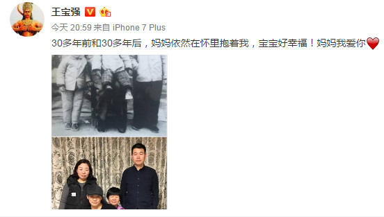 30年前的全家福照片中,媽媽抱著襁褓中的王寶強(qiáng),寶強(qiáng)的哥哥姐姐站在一旁。30年后,全家人重現(xiàn)了當(dāng)年的姿勢(shì),不改的卻是全家人統(tǒng)一的相貌,簡(jiǎn)直就是復(fù)制粘貼。王寶強(qiáng)更動(dòng)情地寫(xiě)道:“30多年前和30多年后,媽媽依然在懷里抱著我,寶寶好幸福!媽媽我愛(ài)你!”