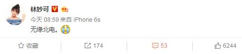 今晨,林妙可在微博發(fā)文“無緣北電”,還配上一個哭的表情,確認(rèn)未通過北京電影學(xué)院初試。