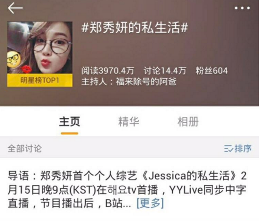 “第一次通過YY LIVE和大家見面!”2月15日,讓無數(shù)宅男大呼“老婆”的韓國(guó)女神級(jí)偶像鄭秀妍(Jessica)選擇把自己的直播首秀放在了YY LIVE!更讓人激動(dòng)的是#鄭秀妍的私生活#這個(gè)直播主題,迅速被粉絲自發(fā)推上微博明星熱門話題第一位,并占領(lǐng)熱搜接近4小時(shí)。
