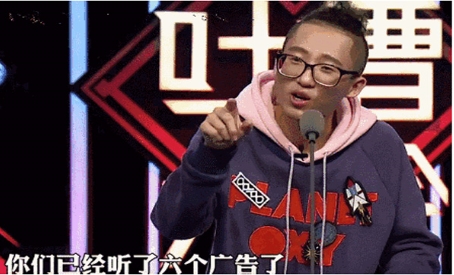 首先,《吐槽大會(huì)》將廣告編進(jìn)段子,充分展現(xiàn)了“營(yíng)銷即內(nèi)容”的魅力。如第一期節(jié)目中李誕用“發(fā)票!蓖虏鄄茉平稹澳隳荛_那種珍藏好多年不褪色的發(fā)票嗎”;第三期節(jié)目中王建國(guó)調(diào)侃王祖藍(lán)“你有沒有京都念慈菴川貝蜜煉枇杷高啊?”等橋段,類似為廣告主巧妙定制的段子比比皆是。