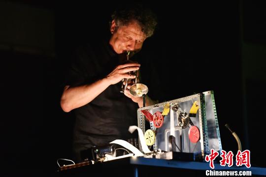圖為法國(guó)電子裝置音樂家在演出!£愇 攝