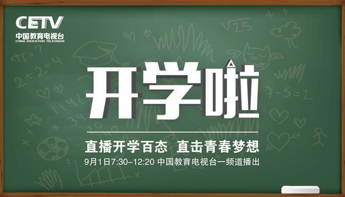開(kāi)學(xué)啦!9月1日,中國(guó)教育電視臺(tái)一頻道將從早間7:30分開(kāi)始,推出5小時(shí)全景式大型直播特別節(jié)目《開(kāi)學(xué)啦!》,精心策劃、傾情關(guān)注,直播開(kāi)學(xué)百態(tài),直擊青春夢(mèng)想。節(jié)目上連黨和政府關(guān)心關(guān)注青少年健康成長(zhǎng)、加強(qiáng)青少年思想政治教育的要求舉措;下接每一個(gè)學(xué)生、每一個(gè)家庭在“開(kāi)學(xué)”這一刻最真實(shí)的幸福、最細(xì)膩的感動(dòng)、最真摯的期待。