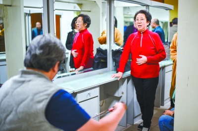 有人在舞臺上開心地接受觀眾如潮般的掌聲,也有人滿懷遺憾地離開。著名梅派表演藝術家李玉芙,特別看重這次演出。但80歲的她因為教學工作太累,這幾天失聲了。為了參加演出她昨天就去醫(yī)院打了激素針,因為沒有見效,演出前兩小時又打了一次針。直到演出開始了,她還在后臺跟琴師合練,做最后的努力。最終還是因為嗓子實在沒法兒堅持,只能在眾人的勸說下,滿懷歉意離開了劇場。