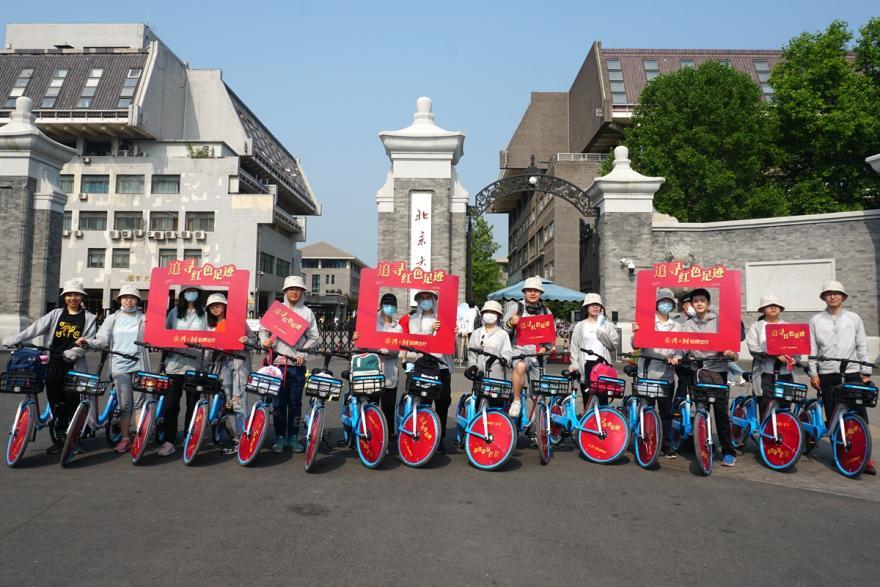 5月22日,北大車協(xié)的十余位同學(xué)組織了一次名為“建黨百年 初心之路”的騎行活動(dòng),他們騎上藍(lán)色的哈啰定制共享單車,從校門(mén)口出發(fā),一路經(jīng)過(guò)中關(guān)村、國(guó)家圖書(shū)館、首都體育館、釣魚(yú)臺(tái)國(guó)賓館等首都地標(biāo),抵達(dá)長(zhǎng)安街上的首都博物館,隨后集體參觀在那里舉辦的“偉大征程——慶祝中國(guó)共產(chǎn)黨成立100周年特展”,經(jīng)歷了一次從身體到心理的全方位黨史洗禮。
