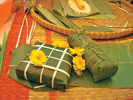 越南的粽子是用芭蕉葉包裹的,有圓形和方形兩種,取天圓地方(越南語(yǔ):Thiên Viên a ph ng)之意。他們認(rèn)為,圓形粽子代表天,方形粽子代表地,天地合一,大吉大利。越南粽子包有糯米、綠豆、豬肉和胡椒粉,味道十分獨(dú)特;粽子的外形呈四方,另外使用橫豎兩根竹篾扎起來,外形像田地,代表新年五谷豐登的意思,而豬肉則表示出入興旺。
