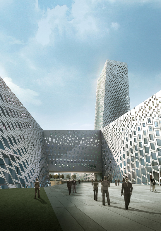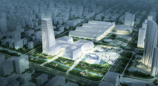 記者看到,“三館”由4個(gè)主體建筑組成,總體呈“田”字形,有工人正在安裝外立面玻璃幕墻。“‘三館’的主體工程基本完工,現(xiàn)在已進(jìn)入外立面玻璃幕墻裝修階段!眳侵苘娬f(shuō),二期工程還會(huì)建造配套高層。
