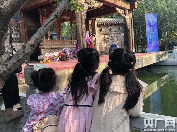 圖為游客和戲曲演員互動(dòng)。(央廣網(wǎng)記者 方永磊攝)