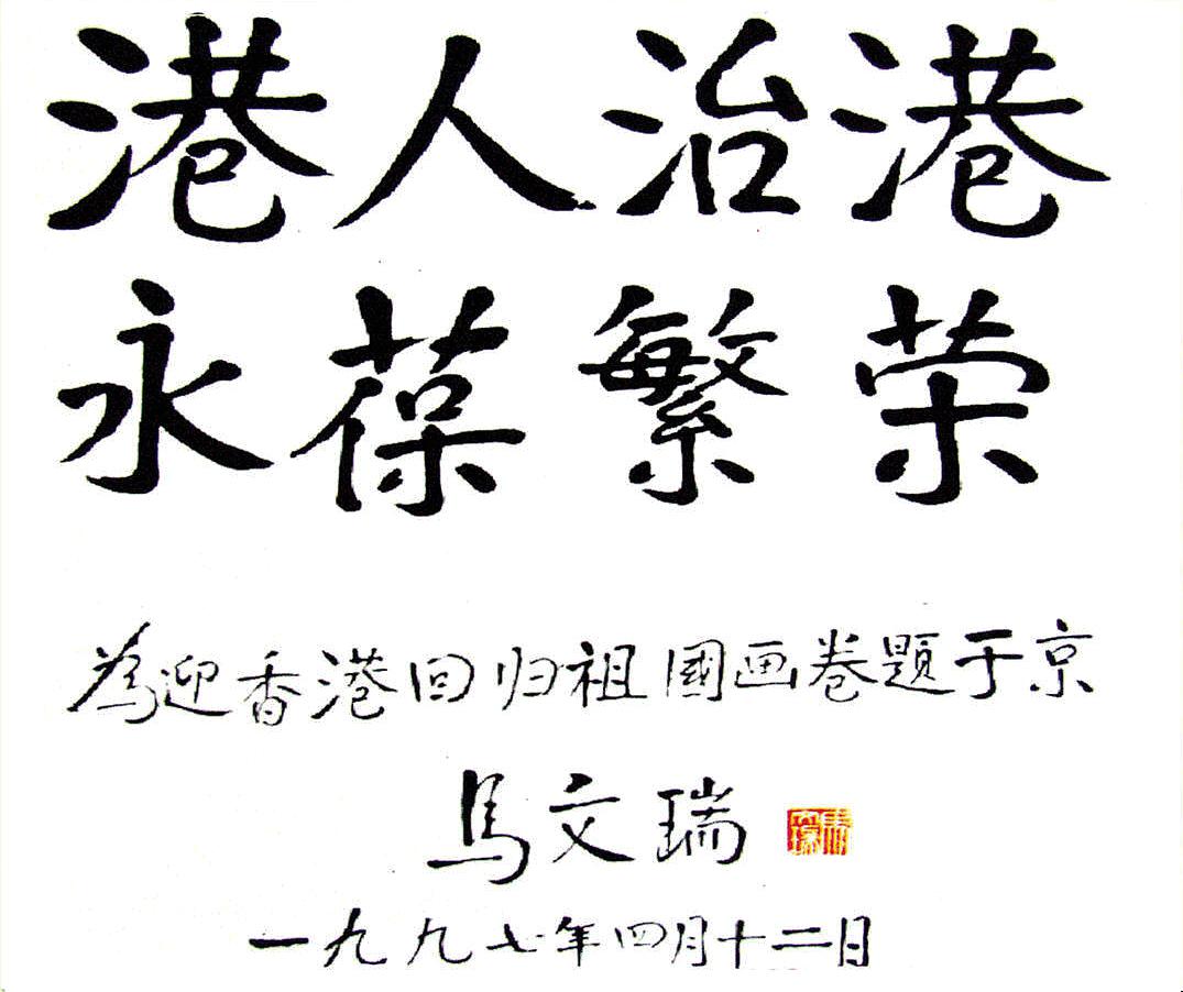 全國政協(xié)原副主席馬文瑞“為迎香港回歸百米書畫長卷題字留念”
