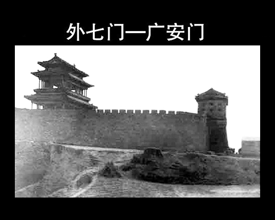 明時(shí)建廣寧門,這里為廣寧門大街,東段為菜市口大街。廣安門是北京外城西垣唯一的城門,也是外城唯一向西開(kāi)的城門。