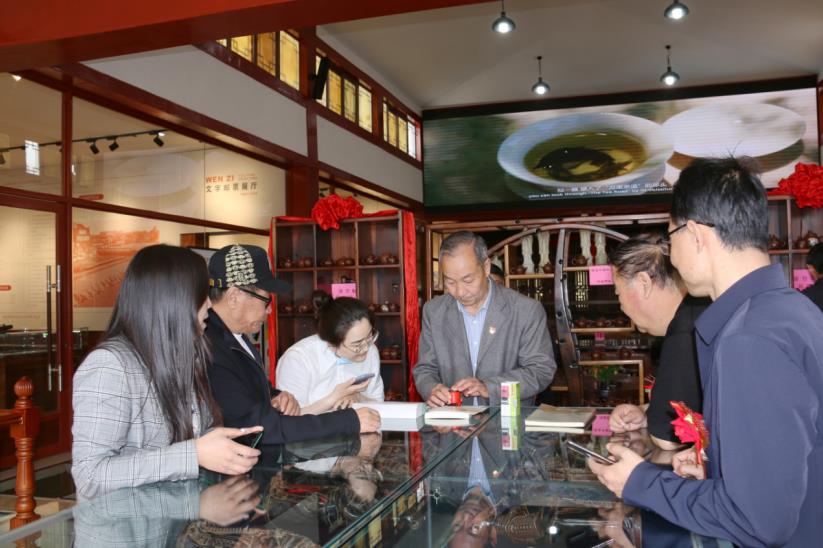(游客在購買雞鳴驛特色紀(jì)念封及明信片,打卡留念)
