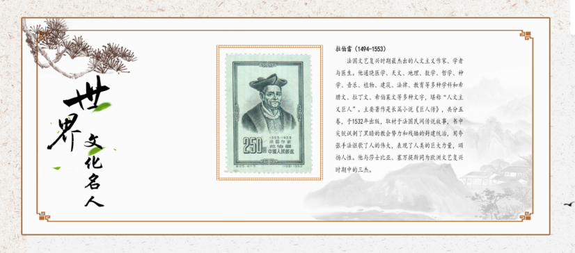 (第三圖為“法國作家拉伯雷”,圖案為拉伯雷肖像畫)