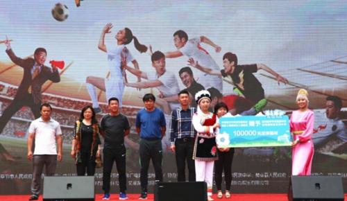首映儀式上,中國(guó)社會(huì)福利基金會(huì)中國(guó)青少年足球發(fā)展基金副秘書長(zhǎng)段紅宇以及前國(guó)腳、著名足球運(yùn)動(dòng)員黎兵、謝峰、曹限東向畢節(jié)市民族中學(xué)副校長(zhǎng)黃瑛和岔河中學(xué)教務(wù)處主任羅濤捐贈(zèng)足球裝備。隨后,北京紫禁城影業(yè)總經(jīng)理許建海將電影《誰(shuí)是球王》主題曲《永遠(yuǎn)在這里》贈(zèng)與中國(guó)社會(huì)福利基金會(huì)青少年足球發(fā)展基金,作為青少年足球推廣歌曲。