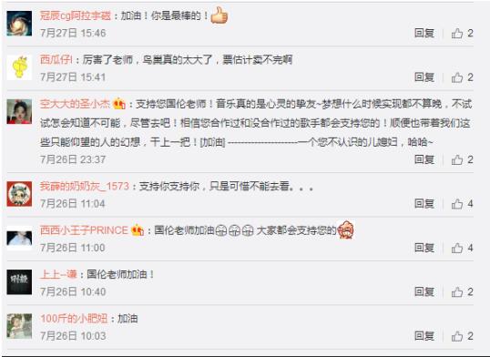 令人沒有想到的是,比質(zhì)疑來的更快更多的是四海八荒的聲援,很多網(wǎng)友稱自己并不是黃國倫的粉絲,但是看到這封信之后,開始追隨,并為這個(gè)音樂老兵追夢(mèng)人加油打氣。