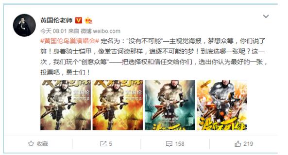 我,黃國倫,決定要在今年的9月23號(hào),在北京的鳥巢體育館,舉辦我生平第一次大型個(gè)人演唱會(huì)!