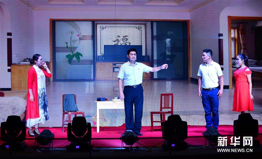 9月7日晚,河南濮陽精準扶貧文藝巡演活動走進清豐縣馬村鄉(xiāng)白馬楊村,演員在表演四平調《不講排場又如何》。為充分發(fā)揮文藝作品在扶貧攻堅工作中的“扶志”和“扶智”作用,河南濮陽圍繞扶貧攻堅主題積極組織文藝創(chuàng)作,廣泛開展文藝宣傳活動。8月中旬至10月中旬,濮陽將在全市五縣一區(qū)開展文藝巡演活動100場次。新華社記者馮大鵬攝