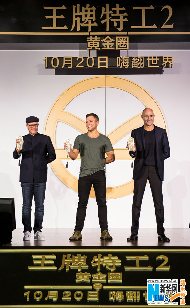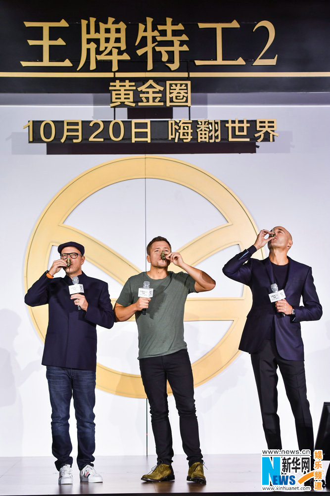 10月20日,好萊塢動(dòng)作冒險(xiǎn)巨制《王牌特工2:黃金圈》主創(chuàng)來滬,一連串驚喜輪番轟炸,演繹“王牌中國熱”!前有兩位主演塔隆·埃格頓、馬克·斯特朗隨性亮相機(jī)場(chǎng),兩人完美演繹 “鄰家少年感”與“長腿大叔風(fēng)”,超萌反差爆紅網(wǎng)絡(luò),引發(fā)粉絲狂贊;繼而入鄉(xiāng)隨俗接受“黃金蟹”款待,大閘蟹霸氣大擺“王牌特工”標(biāo)志,貼合影片主題的同時(shí)兼具濃濃中國風(fēng),觀眾好評(píng)不斷。隨后,中國新聞發(fā)布會(huì)隆重舉行,導(dǎo)演馬修·沃恩攜兩位主演重磅亮相,瞬間引爆了現(xiàn)場(chǎng)觀眾的熱情,一連串驚喜亮點(diǎn)嗨爆現(xiàn)場(chǎng)。主創(chuàng)豪飲“黃金酒”學(xué)說“干杯”、嗨聊影片再升級(jí)與超強(qiáng)卡司、趣評(píng)粉絲二次元畫作興奮不已、現(xiàn)場(chǎng)即興“搞創(chuàng)作”引發(fā)尖叫、獲贈(zèng)錦衣衛(wèi)令牌一秒穿越……眾主創(chuàng)妙趣橫生間又盡顯紳士品格,展現(xiàn)無敵魅力!現(xiàn)場(chǎng)高潮不斷,影迷對(duì)電影的期待再攀高峰。