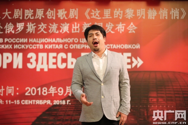 9月6日,中國(guó)國(guó)家大劇院交流演出團(tuán)飛抵俄羅斯,在莫斯科中國(guó)文化中心召開新聞發(fā)布會(huì),為廣大媒體介紹本次巡演亮點(diǎn)。中國(guó)國(guó)家大劇院副院長(zhǎng)趙佳琛、俄羅斯亞歷山大紅旗模范歌舞團(tuán)團(tuán)長(zhǎng)兼藝術(shù)總監(jiān)功勛文藝工作者上校蓋納季·薩切紐克、中國(guó)國(guó)家大劇院音樂藝術(shù)總監(jiān)呂嘉、歌劇《這里的黎明靜悄悄》作曲唐建平、該劇主演張揚(yáng)、徐曉英、巴揚(yáng)演奏家阮明園、亞歷山大紅旗歌舞團(tuán)歌唱演員瓦吉姆·阿南耶夫、馬克西姆·馬克拉科夫出席發(fā)布會(huì)。