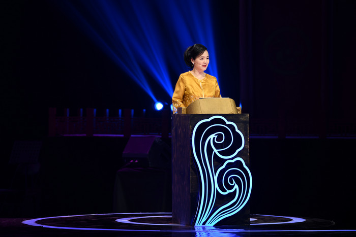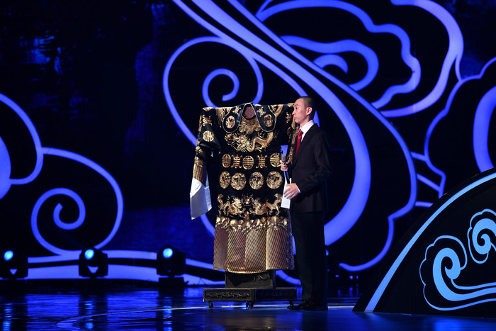 形式上的創(chuàng)新,主要體現(xiàn)在讓現(xiàn)場活起來、動起來上下功夫。文物展示是“大會”的一大亮點,如何不停留在靜態(tài)欣賞,關(guān)鍵是講好背后鮮活的故事。如第一場亮相的戲服“八仙衣”,出自清宮昇平署,一套八件,全部彩色刺繡,金線縫制,每件還繡有所飾仙子的小像,做工極為華麗、精美。通過講述得知,仙衣當(dāng)年是京劇大師尚小云購下的,1937年天津中國大戲院興建,尚小云先生作為股東之一慨然捐贈,寄托了老一輩藝術(shù)家對京劇事業(yè)發(fā)展的一腔熱忱。還有后來展示的名凈裘盛戎、方榮翔師徒先后穿過的包拯的黑蟒,上個世紀(jì)80年代,方榮翔先生穿著它在香港演出,臨場心臟病嚴(yán)重發(fā)作,回到后臺倒下,又強(qiáng)忍病痛起來,重新登臺堅持把戲演完,被觀眾贊譽(yù)為“不倒的包龍圖”。正是這些藝術(shù)家“戲比天大”的感人故事,使文物永葆著生命的溫度,依然“活”在人們心里。