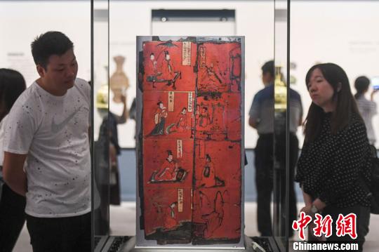 北魏的彩繪人物故事漆屏吸引觀眾目光!钊A峰 攝