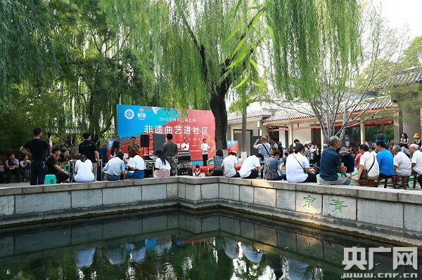 央廣網(wǎng)濟(jì)南9月6日消息(記者 方永磊)2019全國非遺曲藝周系列活動(dòng)于9月6日至10日在濟(jì)南舉行。國內(nèi)最具代表性的非遺曲藝項(xiàng)目和傳承人齊聚泉城,曲藝與泉水、文旅相融合成為本次活動(dòng)的最大亮點(diǎn)。6日下午,濟(jì)南五龍?zhí)豆珗@里絲竹聲聲,薈萃八方唱腔,來自天南地北、地方特色濃厚的非遺曲藝在濟(jì)南泉邊唱響,拉開了曲藝周進(jìn)社區(qū)的序幕。