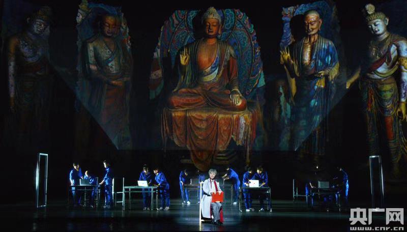 樊錦詩的飾演者茅善玉表示,相比去年在北大的演出版本,今年《敦煌兒女》在“數(shù)字敦煌”部分的舞臺表現(xiàn)上做了新的探索。大漠、飛天、臥佛、禪定佛陀等敦煌元素通過多媒體投影呈現(xiàn)于舞臺,讓觀眾更直觀的看到了壁畫是如何通過精密的數(shù)據(jù)完整保存下來,也讓大家更了解了樊錦詩在“數(shù)字敦煌”上作出的巨大貢獻(xiàn)。