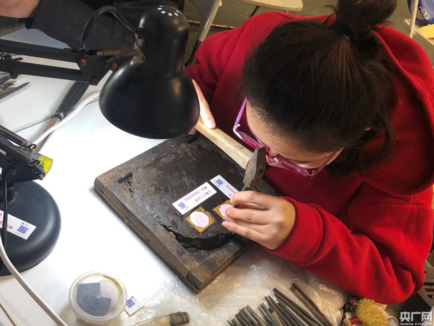圖為手工藝人現(xiàn)場(chǎng)創(chuàng)作。(央廣網(wǎng)記者 方永磊 攝)