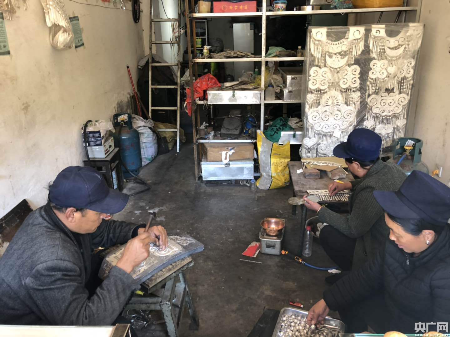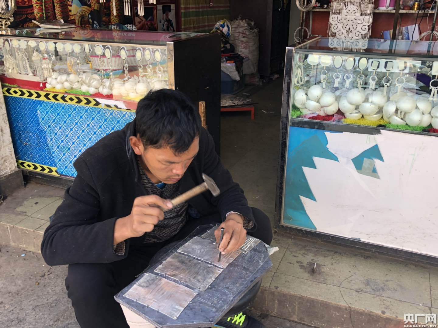 在布拖縣城有一條著名的銀器街,兩旁布滿銀飾店鋪,錘子擊打銅鏨子發(fā)出的“叮叮當(dāng)當(dāng)”聲不絕于耳,銀飾工匠們就在這里日復(fù)一日地用自己的雙手把時(shí)光、歲月打制進(jìn)件件銀器中。