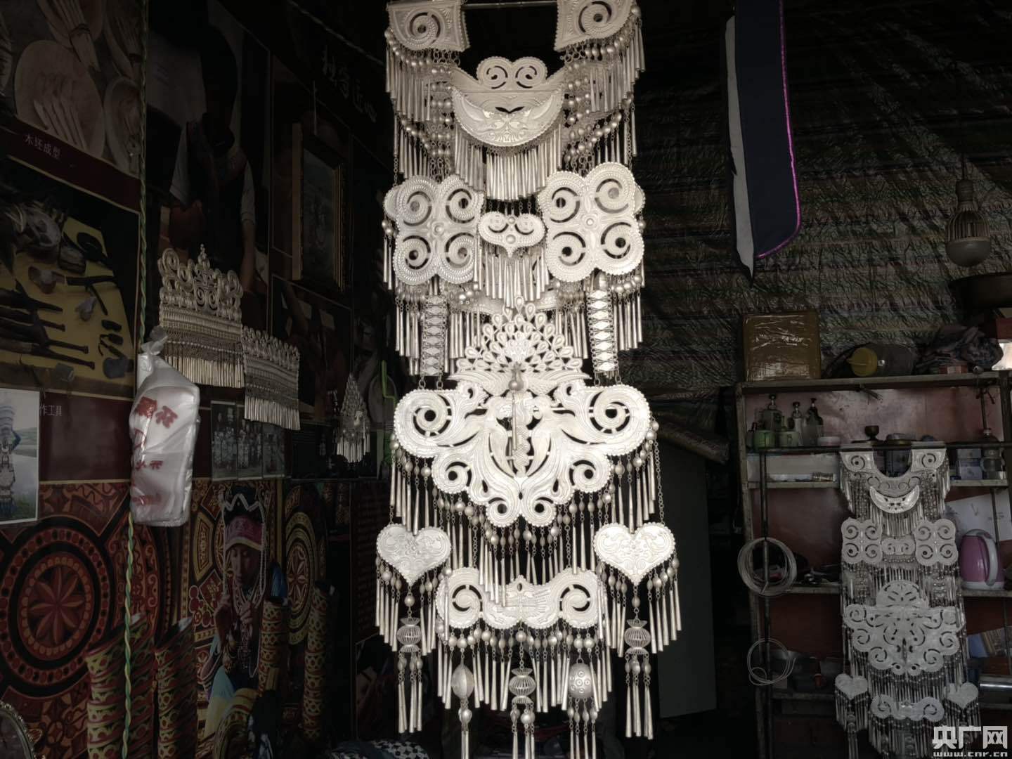 在國(guó)家級(jí)非物質(zhì)文化遺產(chǎn)傳承人勒古沙日家的銀飾店的墻上,琳瑯滿目的飾品,讓人看了眼花繚亂。勒古沙日家已經(jīng)經(jīng)歷了十五代傳承,在當(dāng)?shù)赜兄恍〉拿麣。為了將這項(xiàng)技藝傳承下去,勒古沙日還熱心的去教授弟子。近年來,他教的徒弟數(shù)不清,僅在布拖有嚴(yán)格師承關(guān)系的徒弟就有30多個(gè),而且還協(xié)助他們開了自己的銀飾店。