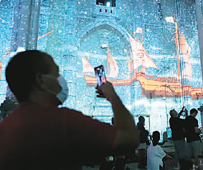 “星空下的里斯本”聲光電體驗(yàn)式藝術(shù)展近日亮相葡萄牙首都里斯本的卡爾莫教堂遺址,這項(xiàng)展覽利用多媒體影像展示,配以葡萄牙特色民族音樂,展現(xiàn)葡萄牙和里斯本豐富的歷史文化。