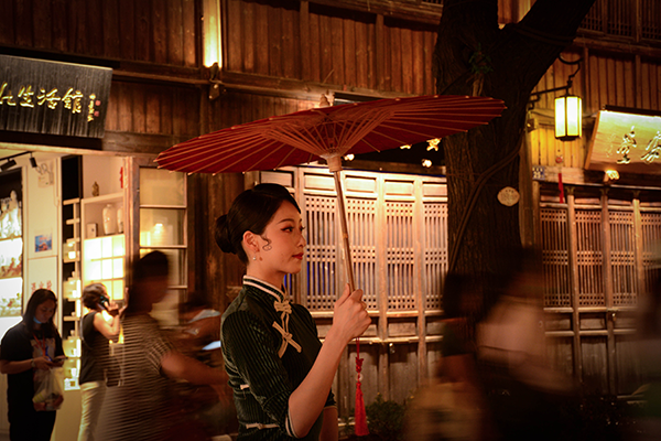 旗袍與油紙傘相得益彰(央廣網(wǎng)發(fā) 嚴南悅攝)