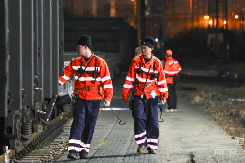 從提鉤解車到制動(dòng)溜放,從瞭望指揮到精準(zhǔn)聯(lián)控,幾名鐵路職工分工協(xié)作、默契配合,在寒夜里勾勒出堅(jiān)守的身影。