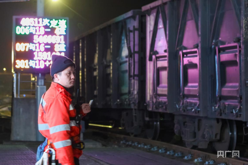 作為配備駝峰調(diào)車設(shè)備的編組站,鐵山洋站承擔(dān)著貨物列車解體、重組的關(guān)鍵任務(wù),是區(qū)域物流通道上的重要樞紐。寒風(fēng)凜冽中,調(diào)車長(zhǎng)陳煒飆手持對(duì)講機(jī),身著反光防護(hù)服,帶領(lǐng)4名連結(jié)員堅(jiān)守在作業(yè)一線!斑@一批要完成33鉤調(diào)車作業(yè),解編9趟列車,調(diào)動(dòng)車輛500多輛,大概需要連續(xù)作業(yè)4小時(shí)!彼o了緊頭上厚實(shí)的棉帽,口中呼出的白氣瞬間消散在冷空氣中,語(yǔ)氣沉穩(wěn)而堅(jiān)定。