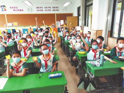 在福建師大附小,同學(xué)們填寫了老師精心準(zhǔn)備的“心情愿望單”。(宋巧文 攝)