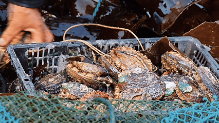 4月15日上午,記者跟隨著邏迴村的村民們駕船來到海上養(yǎng)殖漁排,提起一個(gè)個(gè)被譽(yù)為“鮑魚別墅”的養(yǎng)殖框,將一粒粒重達(dá)半斤左右的鮑魚收獲上岸。村民們告訴記者,使用“鮑魚別墅”養(yǎng)殖鮑魚,經(jīng)濟(jì)效益較好,其與傳統(tǒng)的鮑魚籠養(yǎng)殖相比,人工成本節(jié)省了2/3以上,而鮑魚的產(chǎn)量和產(chǎn)值卻提高了1/4左右,此外,由于鮑魚和海帶一起生長(zhǎng),鮑魚吃的餌料一直可以保持新鮮狀態(tài)。