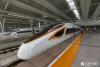 7對“復(fù)興號”列車率先實現(xiàn)350公里時速運營。王初 攝 人民網(wǎng)上海9月21日電 ( 肖云峰、單芳、王初)9月21日零時起,全國鐵路實行新的列車運行圖,7對“復(fù)興號”動車組列車在京滬高鐵線率先實現(xiàn)350公里時速運營,京滬高鐵邁進達速新時代。 據(jù)悉,鐵路部門精心設(shè)計京滬高鐵達速方案,安排7對“復(fù)興號”動車組分別擔(dān)當(dāng)G1/G2、G3/G4、G5/G6、G7/G8、G9/G10、G13/G14、G17/G18次,在京滬高鐵線按時速350公里運行,全程運行時間在4個半小時左右,進一步縮短京滬兩地間時空距離。 “復(fù)興號”動車組列車是按照時速350公里運營研發(fā)制造的中國標(biāo)準(zhǔn)動車組,集成了大量現(xiàn)代高新技術(shù),其安全性、經(jīng)濟性、舒適性以及節(jié)能環(huán)保等性能有較大提升。該列車率先在京滬高鐵實現(xiàn)350公里時速運營,為沿線各大中心城市之間人民群眾出行提供了更多的選擇,更好地滿足了廣大旅客對不同速度等級高鐵運輸?shù)男枨蟆? 相關(guān)新聞:時速350公里!實拍“復(fù)興號”達速運行前的“體檢” -