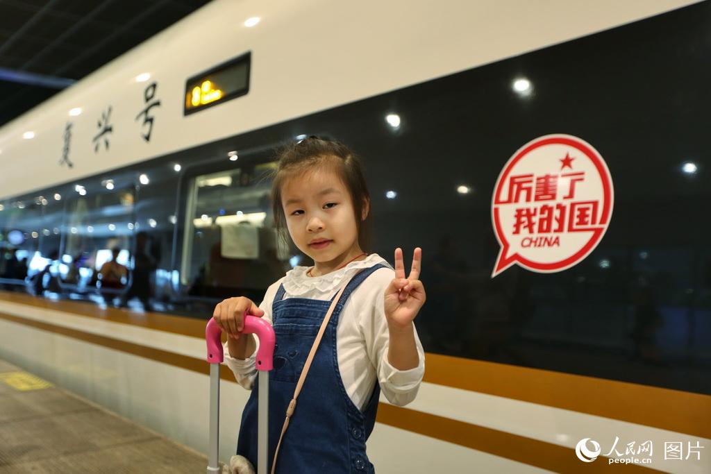小乘客與“復(fù)興號”合影留念。王初 攝 人民網(wǎng)上海9月21日電 ( 肖云峰、單芳、王初)9月21日零時起,全國鐵路實行新的列車運行圖,7對“復(fù)興號”動車組列車在京滬高鐵線率先實現(xiàn)350公里時速運營,京滬高鐵邁進達速新時代。 據(jù)悉,鐵路部門精心設(shè)計京滬高鐵達速方案,安排7對“復(fù)興號”動車組分別擔(dān)當(dāng)G1/G2、G3/G4、G5/G6、G7/G8、G9/G10、G13/G14、G17/G18次,在京滬高鐵線按時速350公里運行,全程運行時間在4個半小時左右,進一步縮短京滬兩地間時空距離。 “復(fù)興號”動車組列車是按照時速350公里運營研發(fā)制造的中國標(biāo)準(zhǔn)動車組,集成了大量現(xiàn)代高新技術(shù),其安全性、經(jīng)濟性、舒適性以及節(jié)能環(huán)保等性能有較大提升。該列車率先在京滬高鐵實現(xiàn)350公里時速運營,為沿線各大中心城市之間人民群眾出行提供了更多的選擇,更好地滿足了廣大旅客對不同速度等級高鐵運輸?shù)男枨蟆? 相關(guān)新聞:時速350公里!實拍“復(fù)興號”達速運行前的“體檢” -