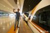 列車員張時文正在查驗“復(fù)興號”旅客車票。王初 攝 人民網(wǎng)上海9月21日電 ( 肖云峰、單芳、王初)9月21日零時起,全國鐵路實行新的列車運行圖,7對“復(fù)興號”動車組列車在京滬高鐵線率先實現(xiàn)350公里時速運營,京滬高鐵邁進達速新時代。 據(jù)悉,鐵路部門精心設(shè)計京滬高鐵達速方案,安排7對“復(fù)興號”動車組分別擔(dān)當(dāng)G1/G2、G3/G4、G5/G6、G7/G8、G9/G10、G13/G14、G17/G18次,在京滬高鐵線按時速350公里運行,全程運行時間在4個半小時左右,進一步縮短京滬兩地間時空距離。 “復(fù)興號”動車組列車是按照時速350公里運營研發(fā)制造的中國標(biāo)準(zhǔn)動車組,集成了大量現(xiàn)代高新技術(shù),其安全性、經(jīng)濟性、舒適性以及節(jié)能環(huán)保等性能有較大提升。該列車率先在京滬高鐵實現(xiàn)350公里時速運營,為沿線各大中心城市之間人民群眾出行提供了更多的選擇,更好地滿足了廣大旅客對不同速度等級高鐵運輸?shù)男枨蟆? 相關(guān)新聞:時速350公里!實拍“復(fù)興號”達速運行前的“體檢” -