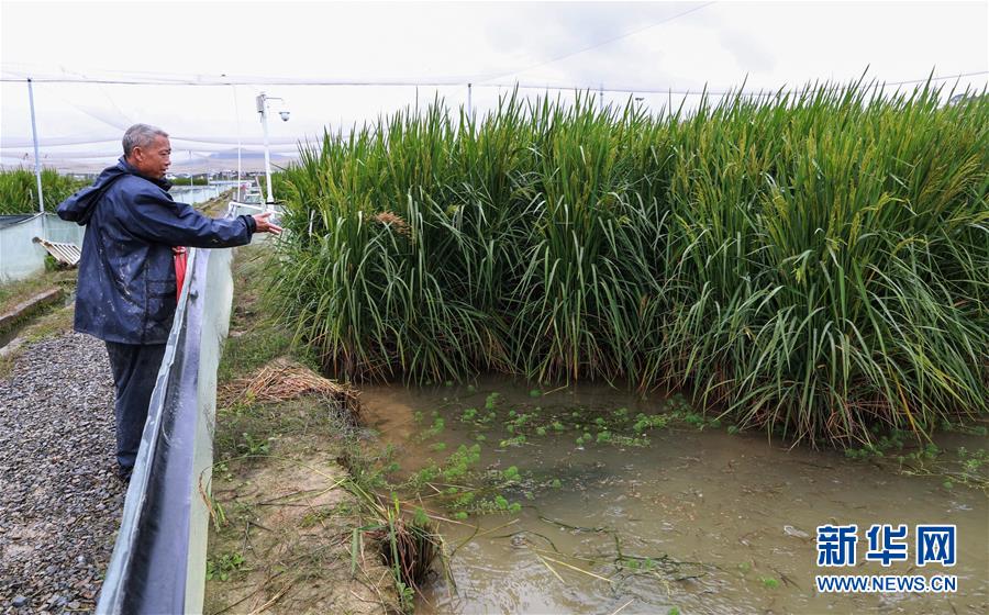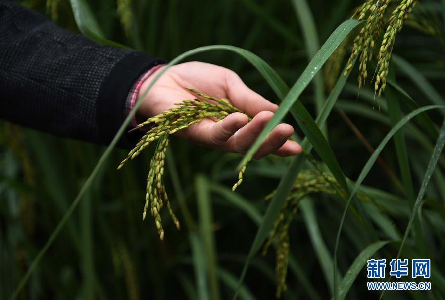 10月16日,在位于湖南長沙縣金井鎮(zhèn)的“巨型稻”試驗(yàn)田,中國科學(xué)院亞熱帶農(nóng)業(yè)生態(tài)研究所研究員夏新界在查看水稻生長情況。水稻長得比人高、畝產(chǎn)可達(dá)800千克以上--中國科學(xué)院亞熱帶農(nóng)業(yè)生態(tài)研究所10月16日正式發(fā)布一種水稻新種質(zhì),株高可達(dá)2.2米,具有高產(chǎn)、抗倒伏、抗病蟲害、耐淹澇等特點(diǎn),被認(rèn)為開啟了水稻研制的一扇新門。新華社記者李尕?cái)z