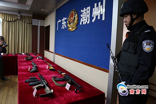 當日,潮州市公安局向媒體通報“2.15”特大非法買賣、持有槍支彈藥案。潮州市公安局副局長嚴照雄介紹,該團伙以網絡販槍為主,其隱蔽性、跨區(qū)域性等特點令案件偵破具有很大困難。據查,這些槍支均為槍支愛好者玩槍所用,目前尚未發(fā)現(xiàn)有用于作案。