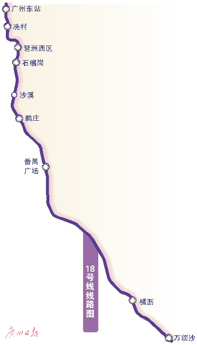 22號線設(shè)8個站點:番禺廣場、祈福、廣州南站、陳頭崗、西三、東沙工業(yè)園、西朗和白鵝潭。